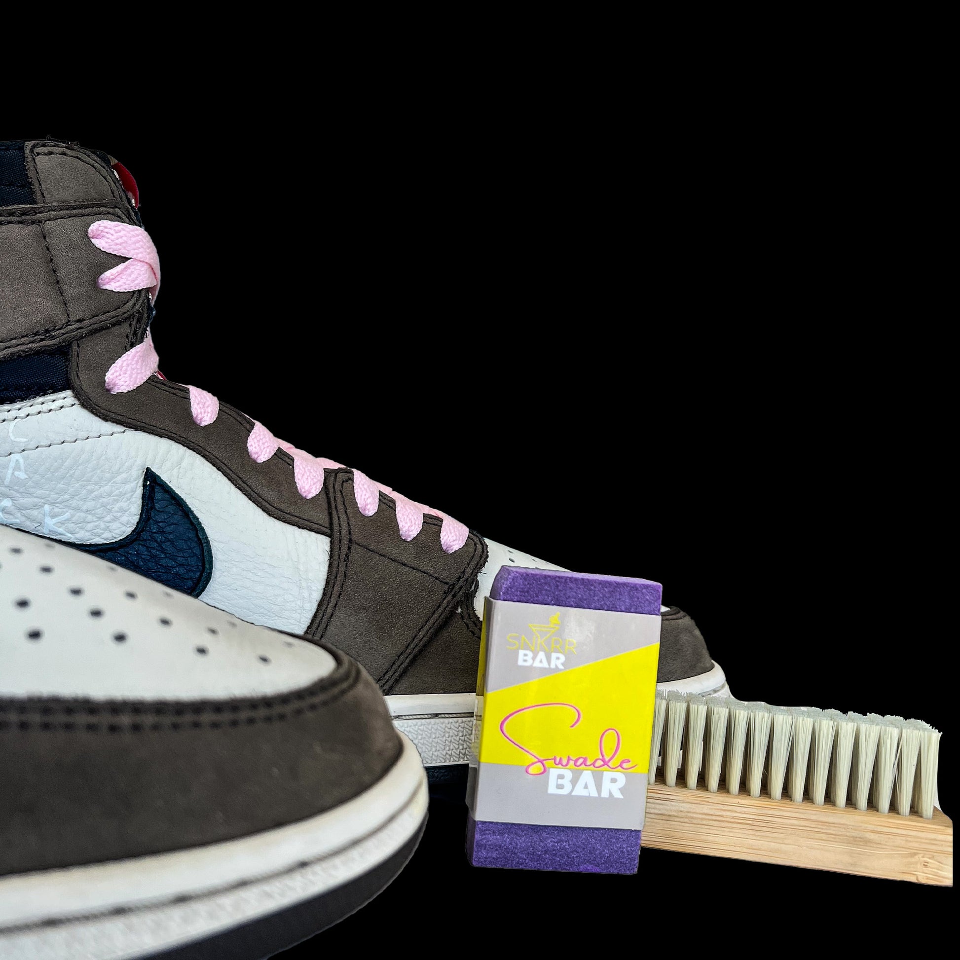 No water. No mess. The Swade Bar & Brush Kit is your go-to for dry-cleaning suede and nubuck sneakers. The eraser bar lifts surface grime while the bristle brush resets the nap for a like-new look.